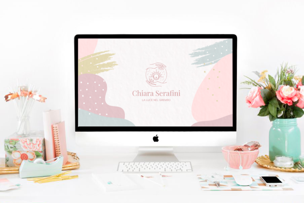 I colori scelti per il logo – rosa, azzurro e giallo – riflettono le diverse sfaccettature dei servizi di Chiara: