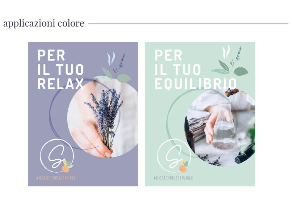 Per rafforzare questa idea ho inserito un cerchio, simbolo di unione e continuità, perfetto per il naming scelto: Il cerchio essenziale.